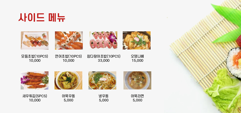 단일&사이드 메뉴HOME > MEUN > 단일&사이드 메뉴